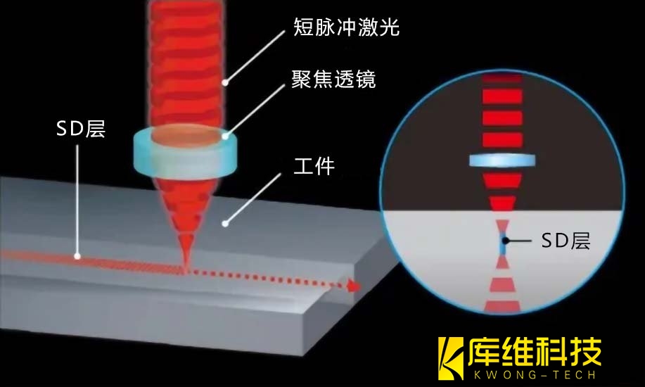 原理:通過精密激光束掃描形成改質(zhì)層,使晶圓可通過外加應(yīng)力沿激光路徑拓展。