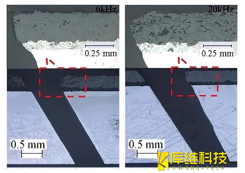 5、脈沖頻率對涂層分層的影響