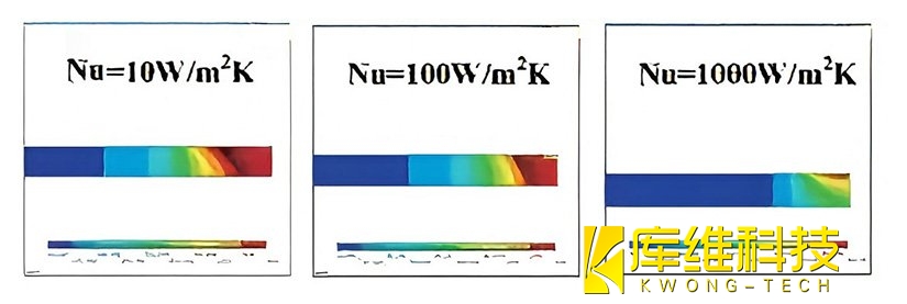 3、不同水射流熱導率下得到的溫度場
