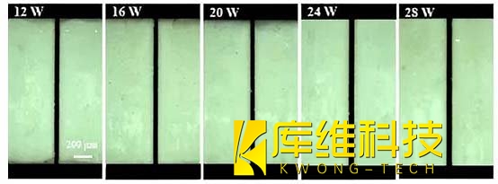 針對(duì)LTCC基板,采用波長532 nm的納秒激光,功率12-28 W,水射流速度180 m/s。加工結(jié)果顯示: